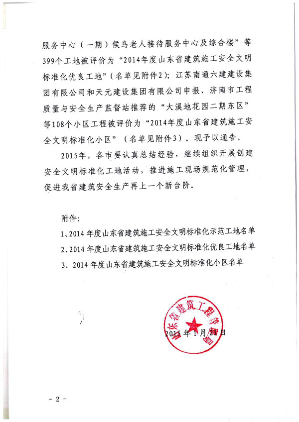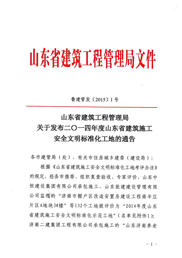 熱烈祝賀我公司榮獲2015年省級(jí)建筑施工安全文明標(biāo)準(zhǔn)化工地