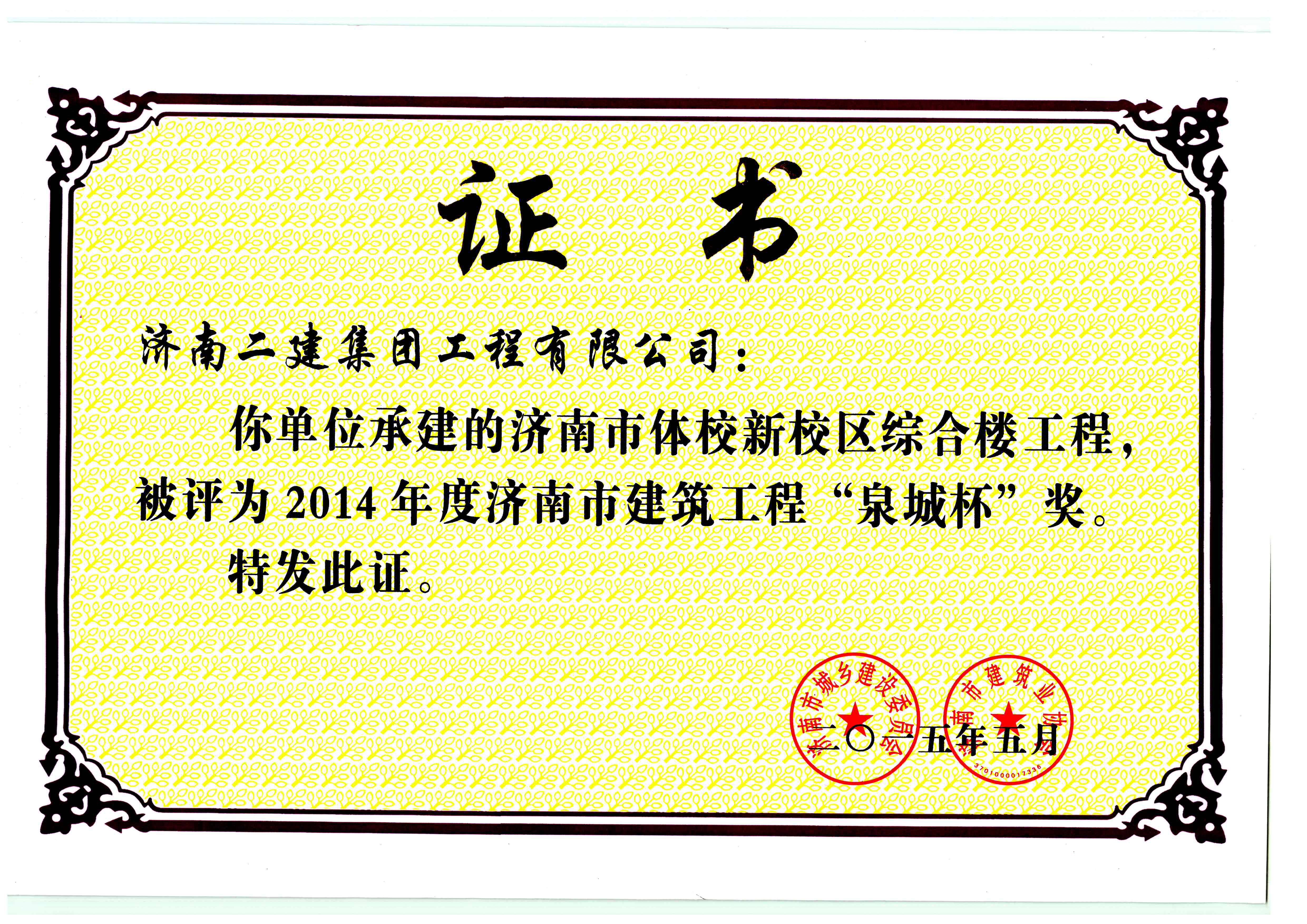 被評為2014年度濟南市建筑工程“泉城杯”獎