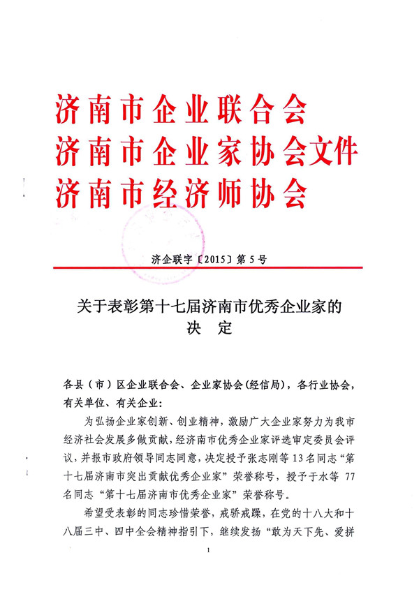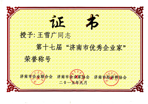 董事長王雪廣獲得“優(yōu)秀企業(yè)家”稱號
