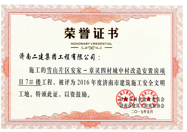 雪山片區(qū)-章靈四村城中村改造7#樓-2016年度濟南市建筑施工安全文明工地