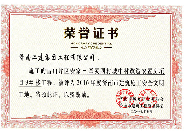 被評(píng)為2016年度濟(jì)南市建筑施工安全文明工地